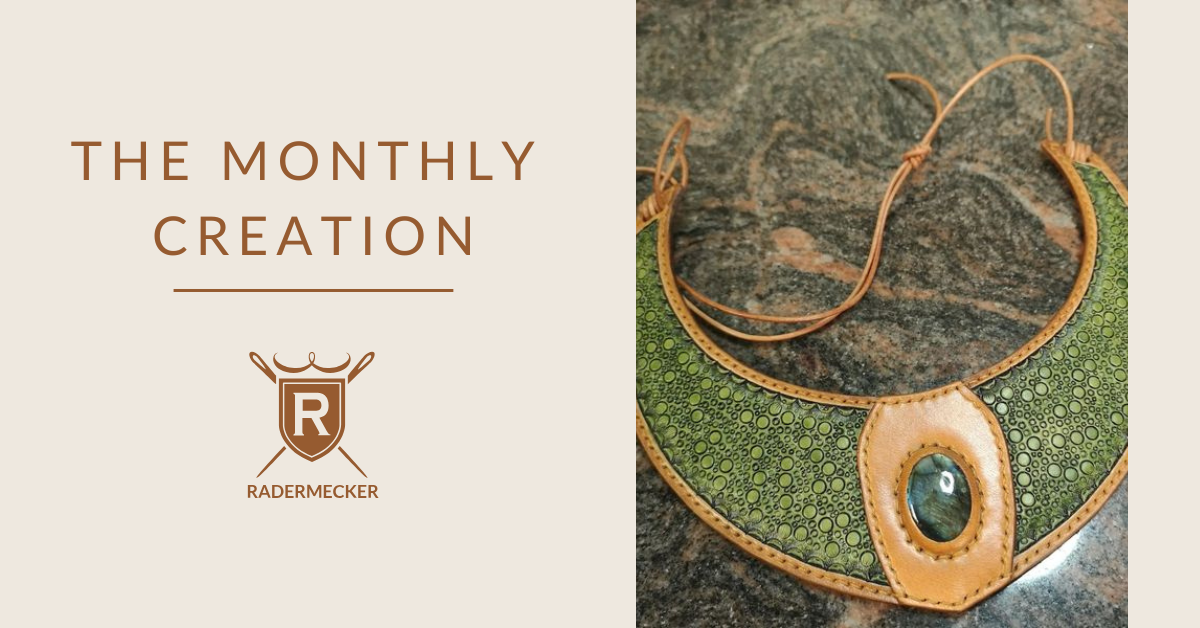 Nous vous présentons ce mois-ci une photo transmise par Armor cuir sur laquelle nous pouvons admirer ce superbe collier avec pierre incrustée réalisé avec notre cuir pleine fleur Pykara.